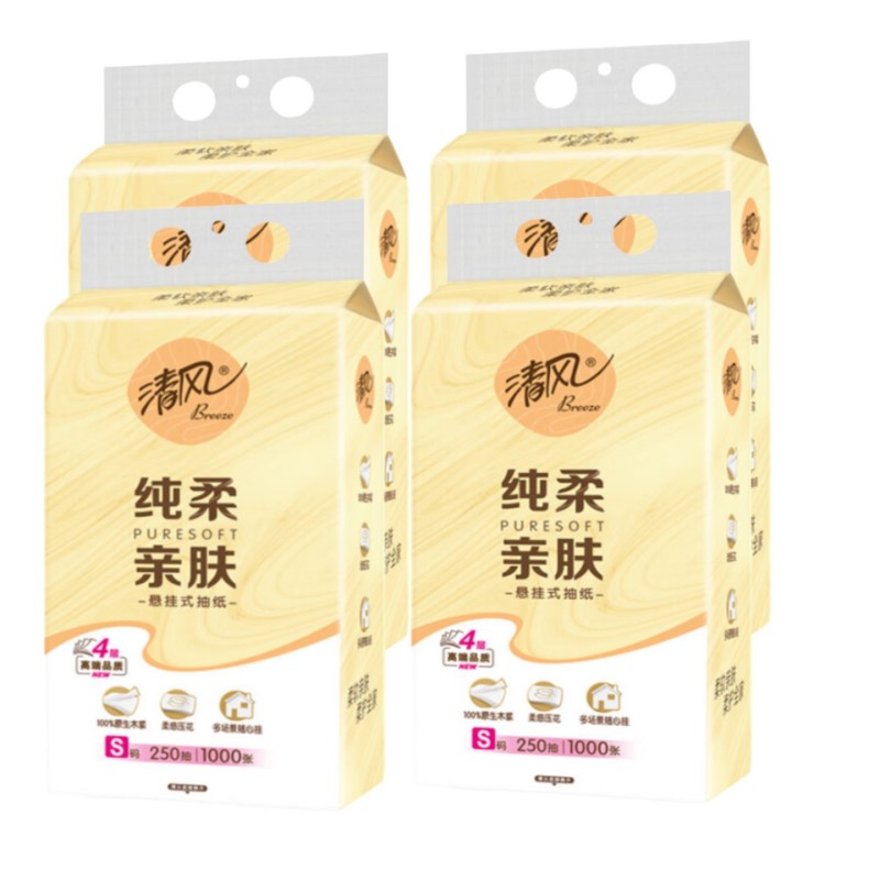 【清风】纯柔悬挂式尾部抽纸4层250抽*4提