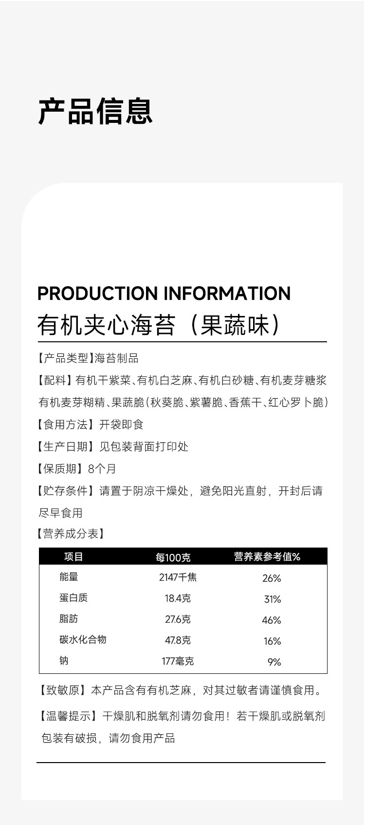 【新疆特产】西域小白有机夹心海苔(果蔬味)