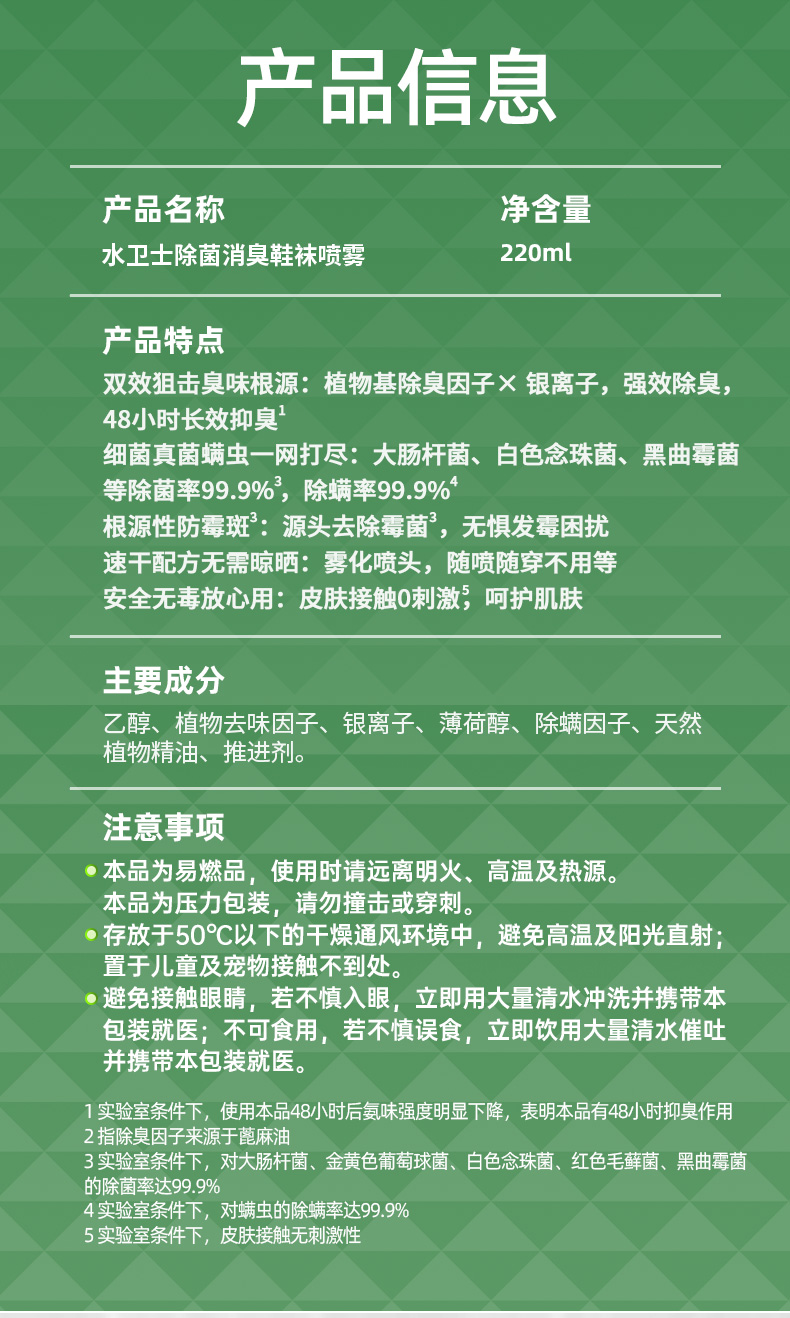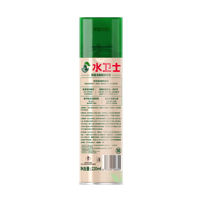 【水卫士】鞋袜除菌消臭喷雾220ml/瓶