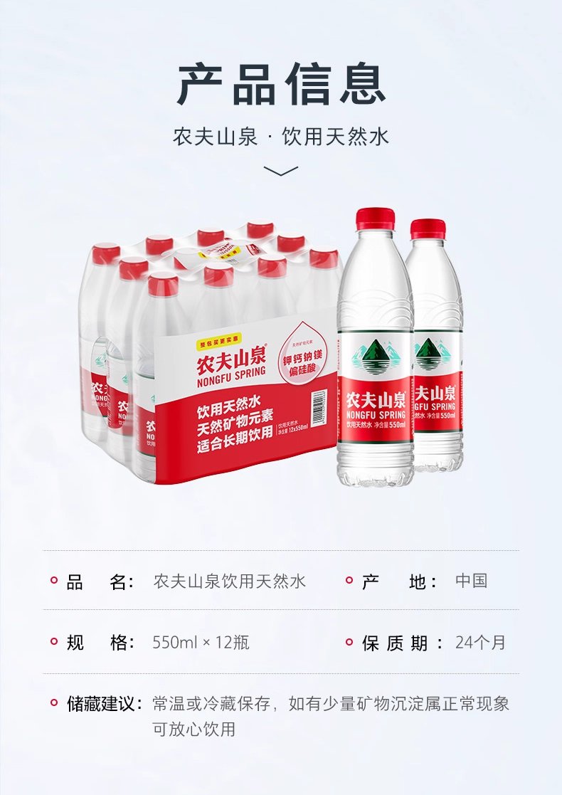 【农夫山泉】天然水550ml*12瓶红色入塑包装